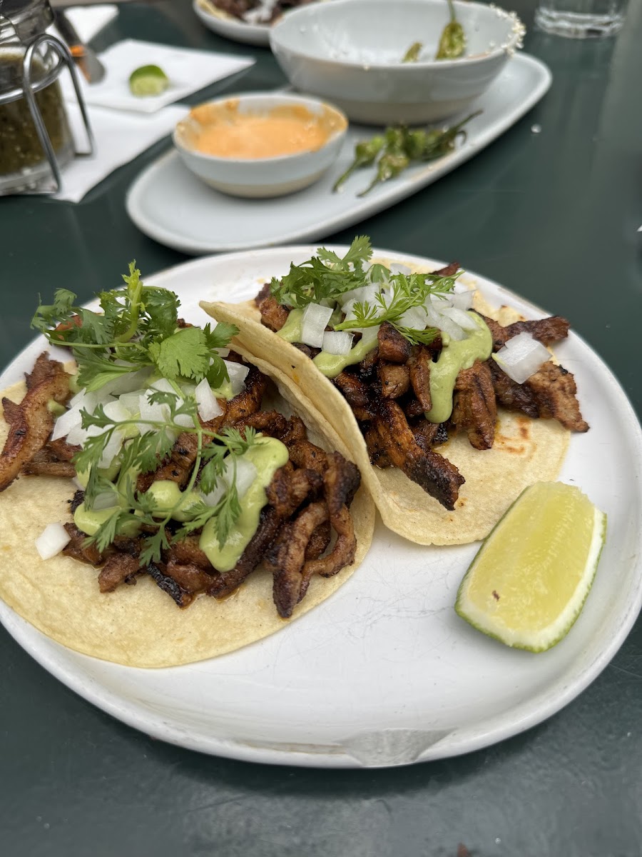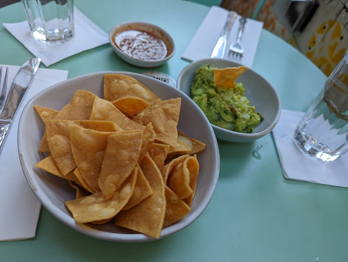 We enjoyed this restaurant on a Tuesday night. They have indoor and outdoor seating. The indoor tables were a bit cramped. Our group of six sat at a high top with barstool seating and definitely would've preferred more space. The table was shared with another party and bar seating was directly behind us so it was a tight squeeze, but we made it work. They don't have table hooks for personal items, but they do have hooks on the walls where you can hang coats and purses. We shared guacamole and chips for the table. They top their guacamole with peanuts. The nuts were bright red, but didn't add much flavor for the dip. The avocado was chunky and fresh. For my main, I had the cauliflower tacos. The cauliflower was roasted, but I would've preferred a bit more of a charred texture. Still, it paired well with the onions and other toppings. Overall, it was tasty. My friends also enjoyed the chicken and fish tacos. You can specify a two or three count for all of the taco orders. To drink, I had the habanero grapefruit margarita. The habanero infused tequila is quite spicy so they invite you to sample it before ordering. I ended up asking for half spicy, half plain but I wish I went all in because the drink was pretty mild. It was garnished with fresh grapefruit which I enjoyed. For large parties, they automatically add gratuity.